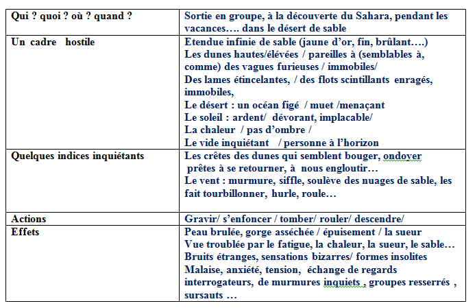 - décrire les conditions naturelles et climatiques, les circonstances extrêmes ou surprenantes. exemple : dans le désert algérien