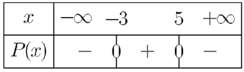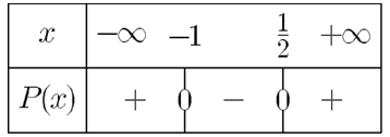 في هذا المثال و حسب الجدول مجموعة حلول المتراجحة $$(P(x)\ge هي