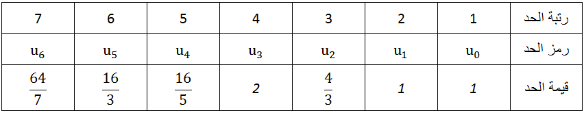احسب الحدود السبعة الأولى لهذه المتتالية