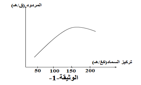 قسم حقل من القمح الى قطع متماثلة زودت كل قطعة بكميات متفاوتة من الأسمدة، منحني الوثيقة(1) يترجم نتائج المردود.
