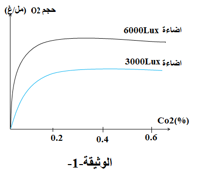 قيست شدة التركيب الضوئي لنبات اخضر في شروط خاصة كما يظهر في الوثيقة (1) (المحتوى العادي للهواء من