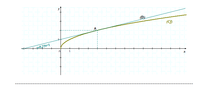 - عين معادلة المماس للمنحنيالممثل لدالة المرجعية "الجذر التربيعي" عند النقطة