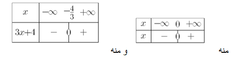 وبالتالي جدول تغيراتها هو