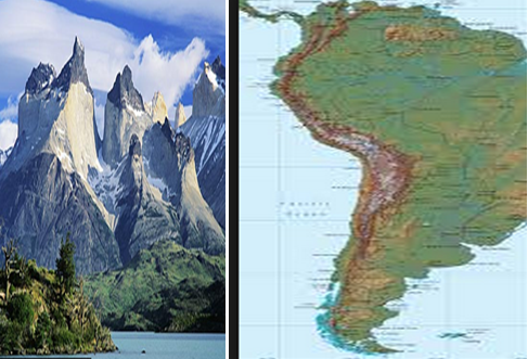 مثال : جبال الانديز تقع جبال الانديز على طول غرب أمريكا الجنوبية10000 كما نشأت نتيجة اصطدام صفيحة المحيط الهادي بالصفيحة القارية أمريكا الجنوبية و هذا يؤدي إلى غوص الصفيحة المحيطية من جهة تحت الصفيحة القارية ومن جهة أخرى تتسبب الضغوطات الباطنية في نشأة جبال الانديز من جهة و إلى حدوث فوالق قارية تتسبب في اندفاع الماغما نحو السطح (البركنة ) والى حدوث زلازل عنيفة بالمنطقة .