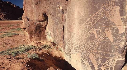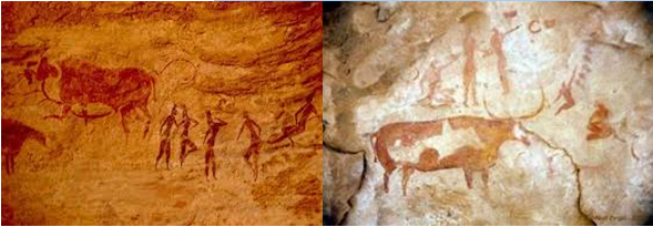 تبين رسومات التاسيلي بصحراء الجزائر وجود حيوانات مثل الابقار والفيلة والزرافات ،