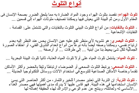 هو تغير في خصائص و مكونات البيئة بسبب خلل في كمية أو جزء من مكونات البيئة و تتمثل في :