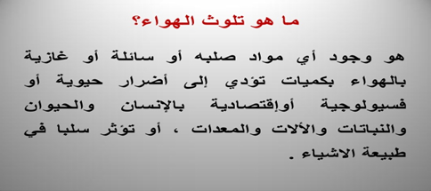 يتم تلوث الماء و الهواء كنيتجة مباشرة لنشاط الانسان الصناعية و الزراعية و استعمال وسائل النقل المختلفة و غيرها.