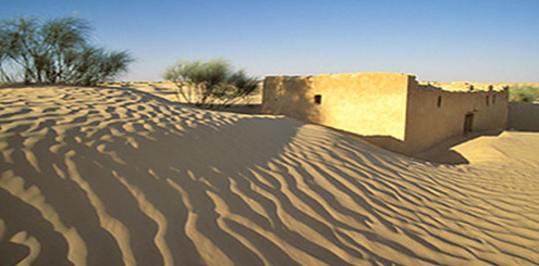 التصــحر: هي (عمـلية زحف الرمال من المناطق الـصحراوية الى المناطق الشمالية وينجـم عن التصحر