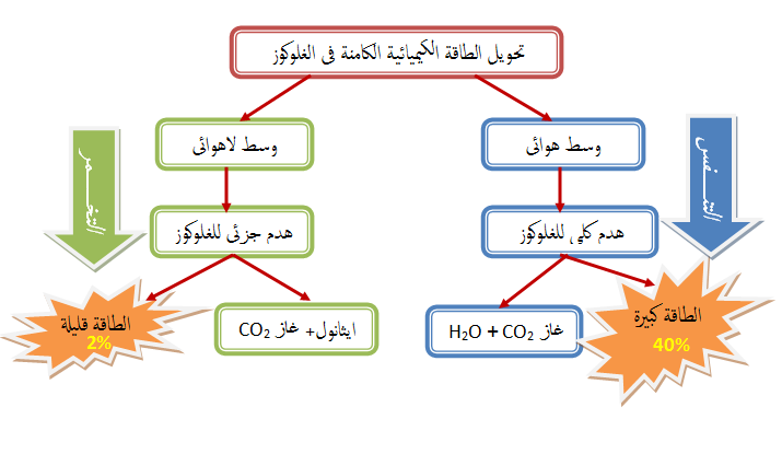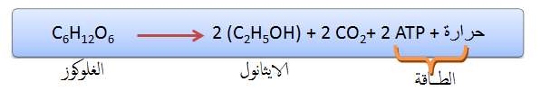 • عند غياب الأكسجين (وسط لاهوائي) تقوم الخميرة بظاهرة التخمر الكحولي فتنتج طاقة ضئيلة.