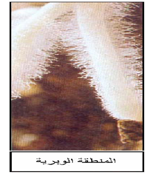 لغرض تحديد بنية الاوبار الماصة تم فحص مجهري لمقطع عرضي في مستوى المنطقة الوبرية فتحصلنا على البنيات التشريحية الممثلة في الوثيقة2 .