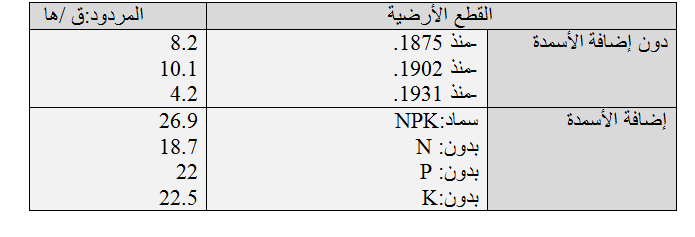 في الأرض الغير معالجة بالأسمدة (بدون إضافة أسمدة) يكون المردود ضئيل و تناقص هذا المردود كلما طال الزمن ذلك راجع لتناقص المواد المعدنية في التربة و التي استهلكت من طرف المحاصيل السابقة.