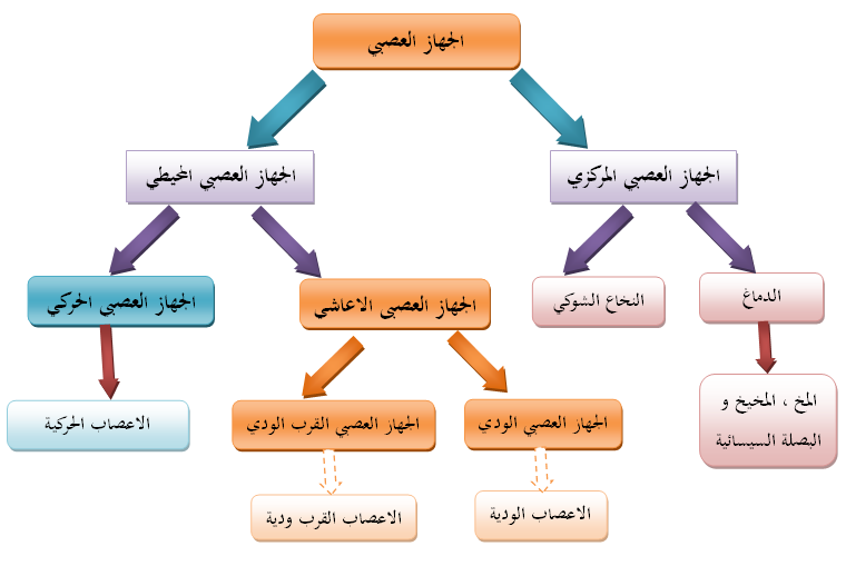 للجهاز العصبي وظائف متعددة حيث يقوم بجمع المعلومات وترتيبها وربطها مع بعضها البعض لاستنتاج معلومات جديدة كما يقوم بتخزينها لاستعمالها عند الضرورة ومنه فان الجهاز العصبي يعتبر المحرك الأساسي لجميع نشاطات الإنسان ، يمكن تقديم مكونات الجهاز العصبي في المخطط التالي :