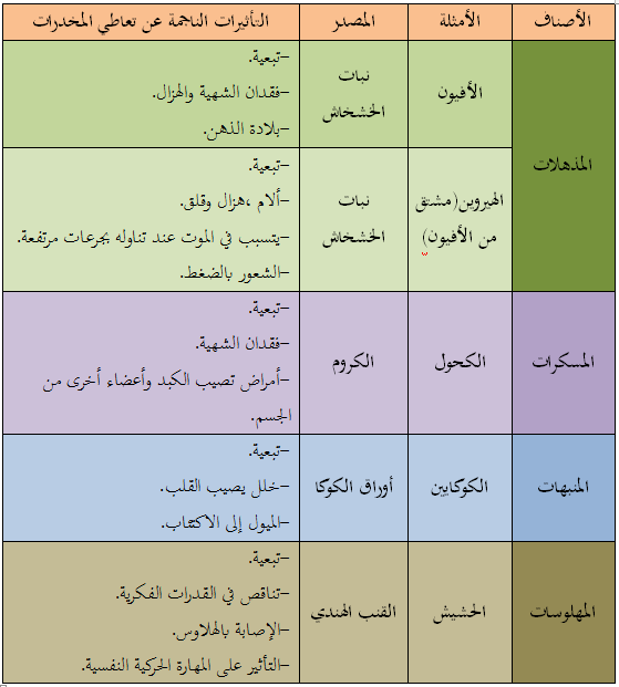- تأثير المخدرات المستعملة صيدلانيا :