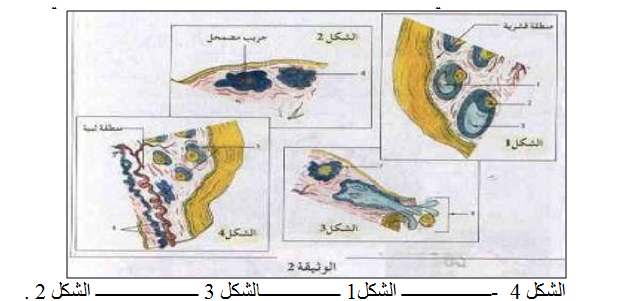 المبيض غدة صماء يتكون من مجموعة من الجر يبات المختلفة الأشكال والأحجام والألوان ،وتوجد في جدار المبيض وتكون مرتبة حسب الأشكال الموضحة في الوثيقة 2