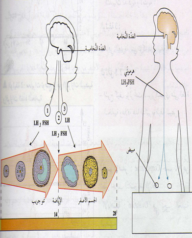 - تؤثر الغدة النخامية على النشاط الدوري للمبيض بإفرازها للهرمونين: FSH و LH
