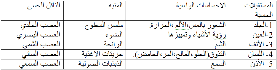 ينتج الإحساس الوعي عن تنبيه المستقبلات الحسية