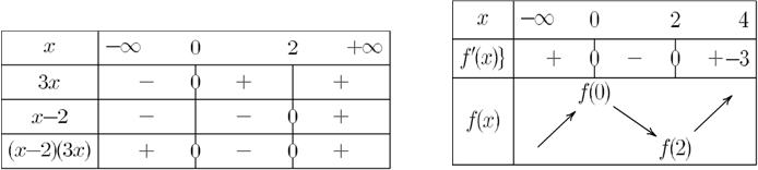 نلخص هذه النتائج في جدول يدعى جدول تغيرات الدالة