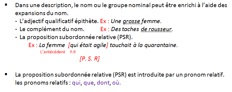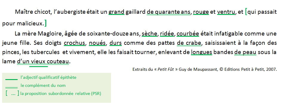 Souligne et précise la nature grammaticale des expansions du nom (l’adjectif qualificatif épithète, le complément du nom, la proposition subordonnée relative (PSR)).