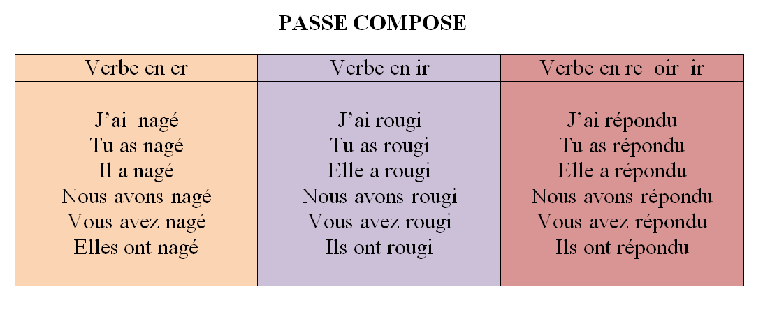 Pour conjuguer au passé composé, tu prends : avoir au présent + participe passé du verbe conjugué
