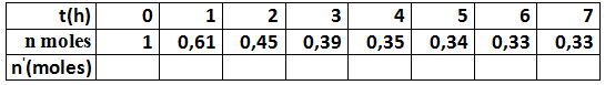 نعاير في درجة حرارة ثابتة الحمض المتبقي من ساعة للأخرى فنحصل على النتائج المسجلة في الجدول التالي :