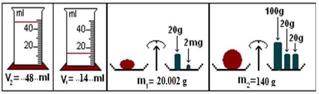 احسب ما يلي (الحجم و الكتلة) في كل حالة :