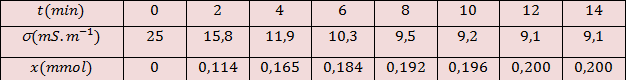 1.3 - تتناقص الناقلية النوعية للمحلول أثناء هذا التحوّل الكيميائي لأن ناقلية الشاردة الناتجة