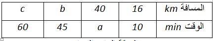 | المسافة Km | 16 | 40 | 72 | 96 |