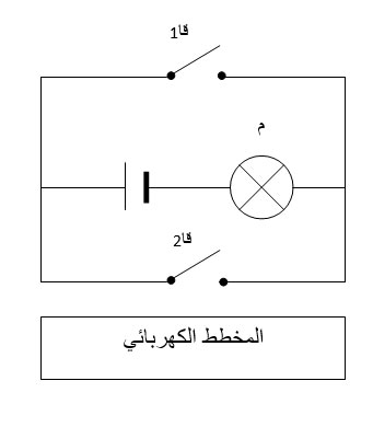 المخطط المقابل يمثل الدارة من نوع أو لان القاطعتان مربوطتان على التفرع و يكفي أن تكون أحد القاطعتين مغلقة حتى يشتعل المصباح