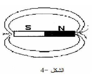 يمثل الشكل 4 مغناطيسا و بعض خطوط حقله المغناطيسي .