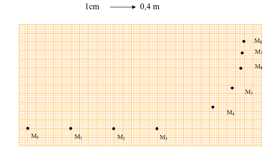 - احسب السرعة اللحظية للجسم في الموضع ؟، و مثلها باستعمال السلم التالي: