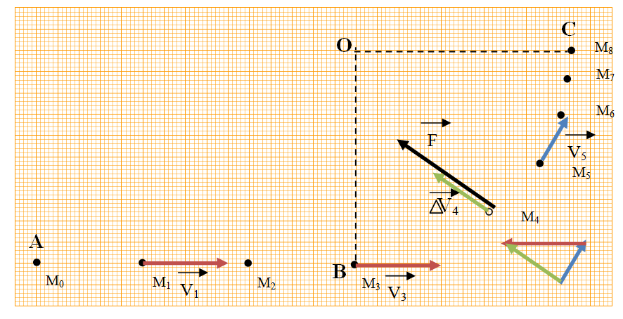 - استنتج تمثيل شعاع تغير السرعة في الموضع ، و احسب طويلته مقدرة بوحدة؟.