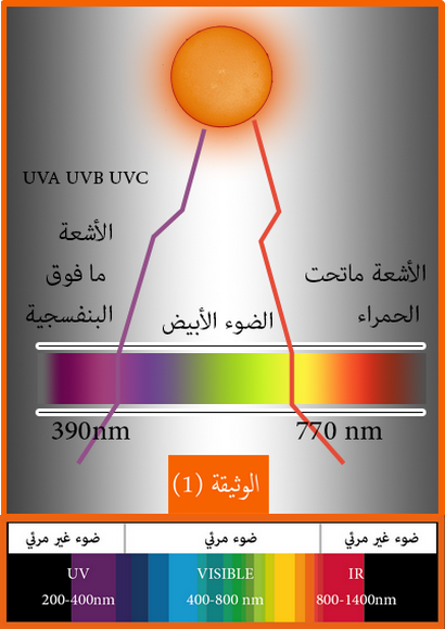 ج ت3: إلى أنواع الإشعاعات ما فوق البنفسجية UVC-UVA-UVB وطول موجاتها.