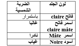 بين جدول الوثيقة (04) علاقة الضربة الشمسية بلون بعض البشرات الجلدية
