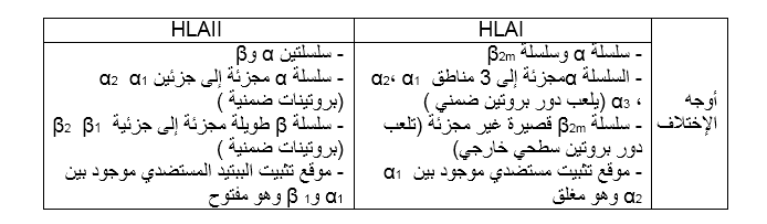 حدد أوجه الإختلاف بين HLAI و HLAII