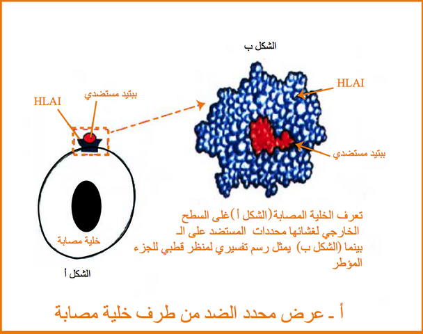 لكي تقوم الـ LTC بنخريب الخلايا المصابة يجب أن تقدم الخلايا المصابة الببتيد المستضدي الفيروسي مرتبطا بالـ HLAI إلى الـ LTC مما يسمح لـ LTC بالتعرف في آن واحد على الـ hlai وعلى محدد المستضد (تعرف مزدوج) فتقوم بتخريب الخلايا المصابة فقط.