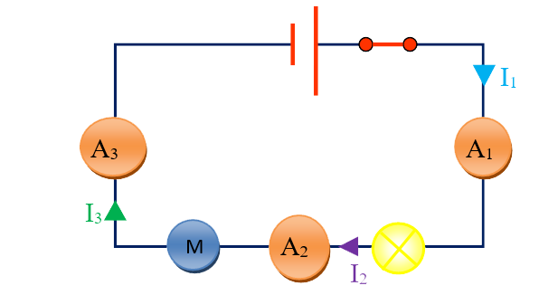 إن شدات التيار في الفروع الحاملة للمصباح L1 و المحرك الكهربائي لا تتغير في حين أن شدة التيار في الفرع الرئيسي تزيد