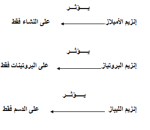 يقوم أنزيم اللعابين بتحويل النشاء فقط إلى سكر ثنائي ( شعير ) إذًا للأنزيمات تأثير نوعي.