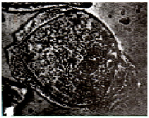 - تظهر الملاحظة وجود خلايا مفلطحة على شكل كتل ملتصقة مع بعضها العض او منفصلة تتكون كل واحدة من مادة أساسية محببة هي الهيولى تحاط بغشاء رفيع هو الغشاء الهيولي يوجد في مركز كل خلية كرية كاسرة للضوء هي النواة.