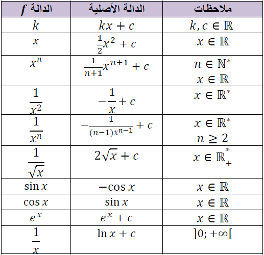 2 الدالة الأصلیة لدالة التي تنعدم من أجل قیمة